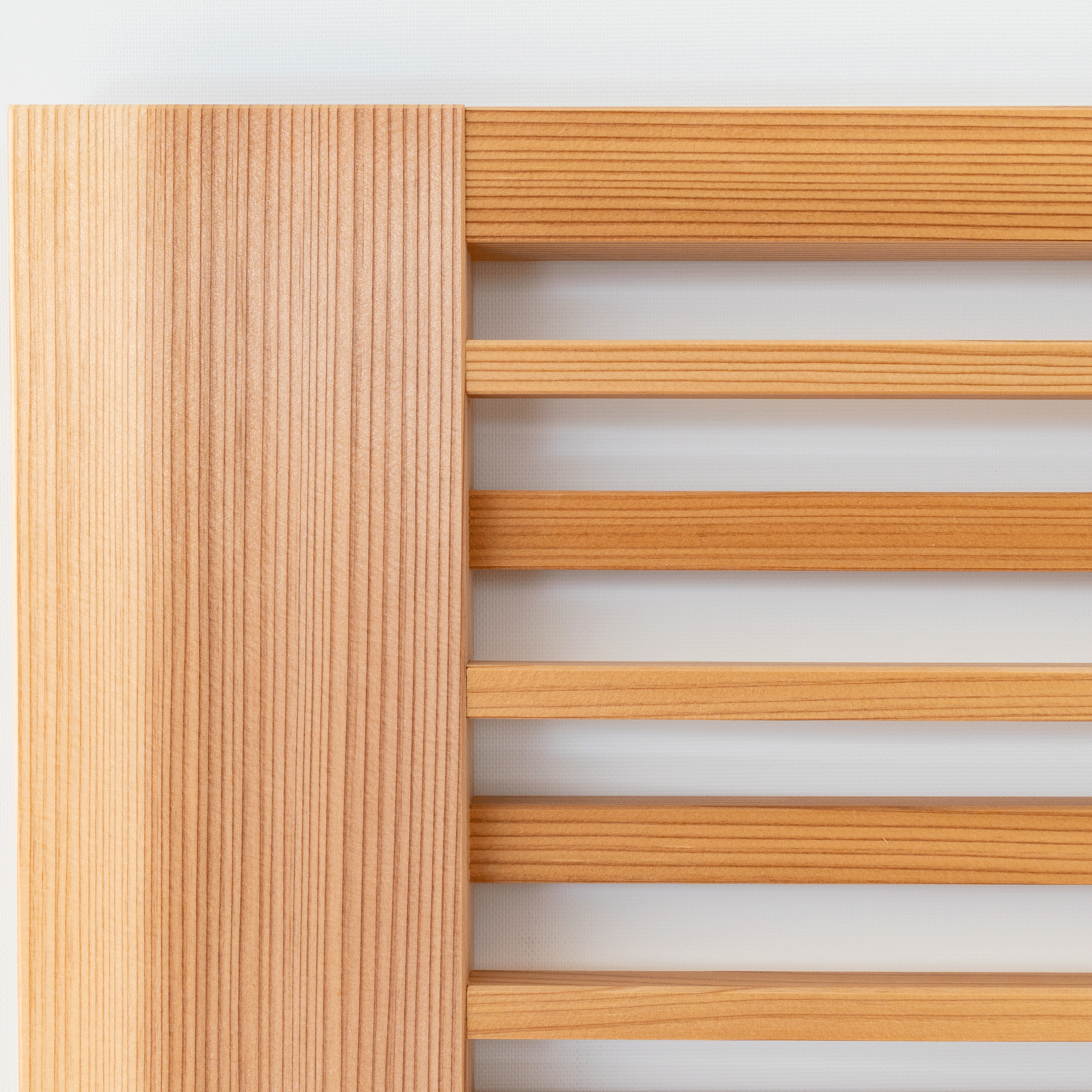 格子の隙間から漏れる自然光、風の流れが柔らかく透き通り空間の質を格上げ。
